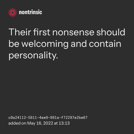 поделитьсяTheir first nonsense should be welcoming and contain personality.