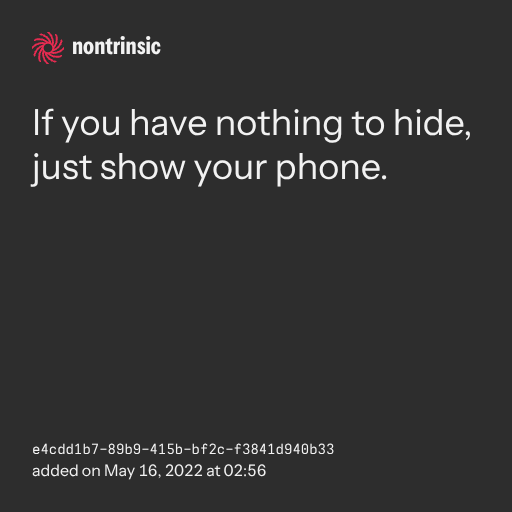 поделитьсяIf you have nothing to hide, just show your phone.
