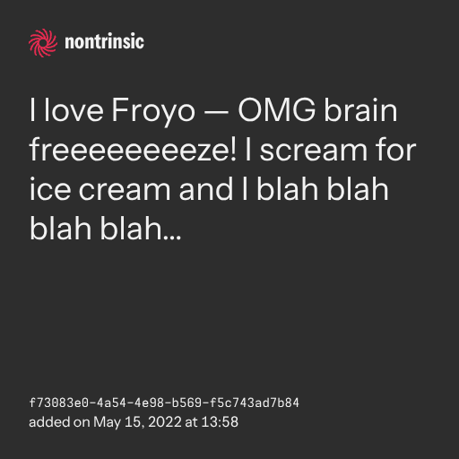 поделитьсяI love Froyo — OMG brain freeeeeeeeze! I scream for ice cream and I blah blah blah blah…