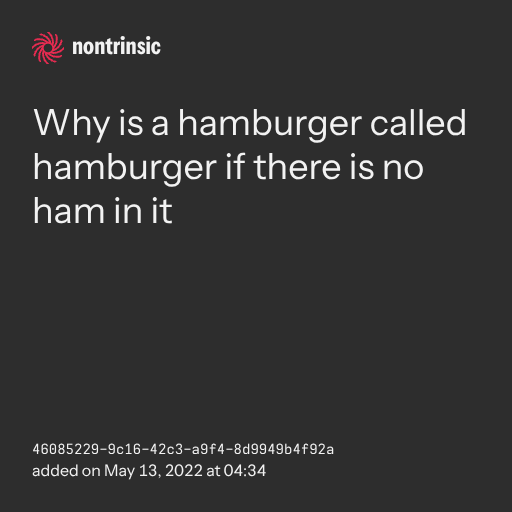 поделитьсяWhy is a hamburger called hamburger if there is no ham in it