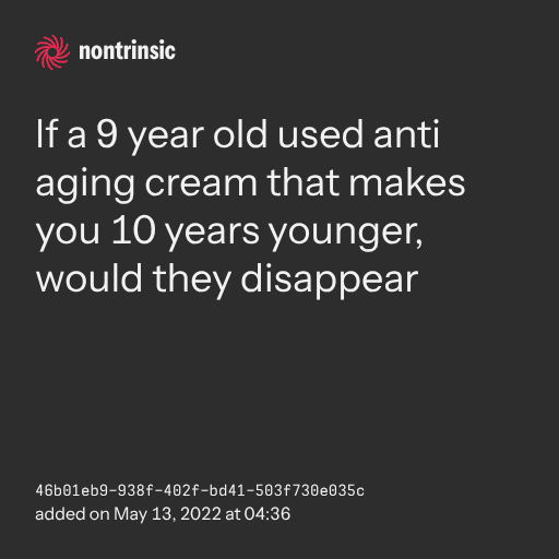 поделитьсяIf a 9 year old used anti aging cream that makes you 10 years younger, would they disappear