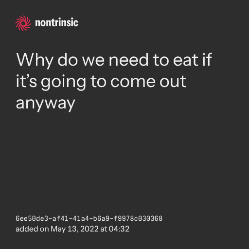 поделитьсяWhy do we need to eat if it’s going to come out anyway