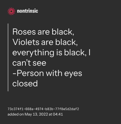 поделитьсяRoses are black, Violets are black, everything is black, I can’t see