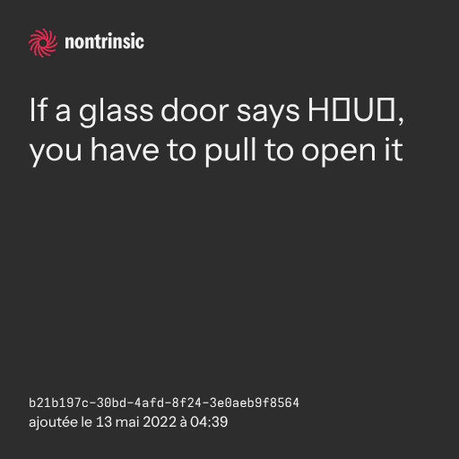 поделитьсяIf a glass door says HƧUꟼ, you have to pull to open it