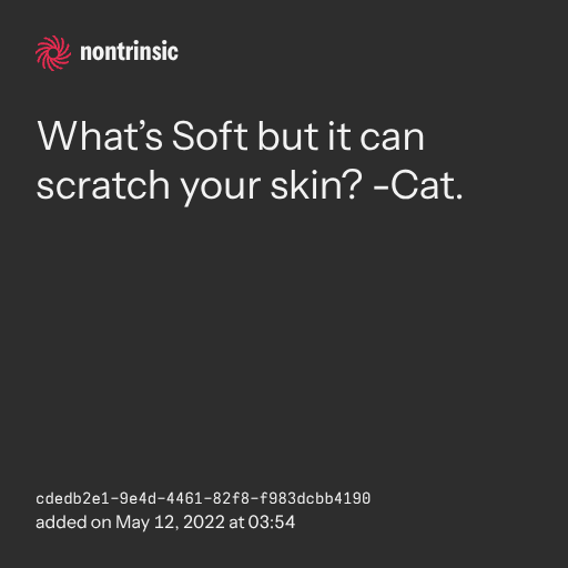поделитьсяWhat’s Soft but it can scratch your skin? -Cat.