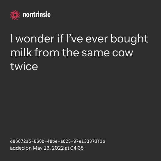 поделитьсяI wonder if I’ve ever bought milk from the same cow twice