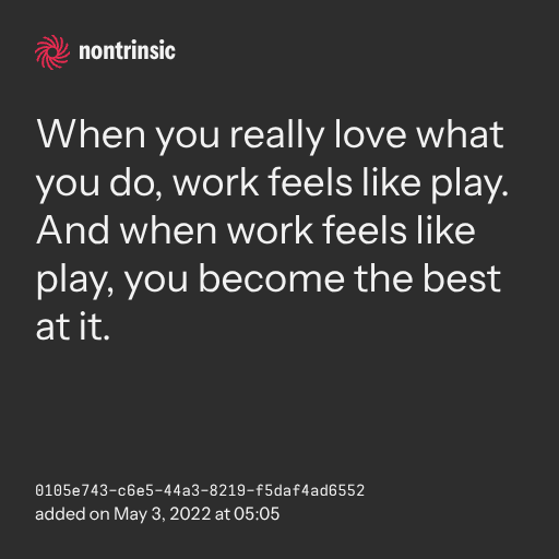 поделитьсяWhen you really love what you do, work feels like play. And when work feels like play, you become the best at it.