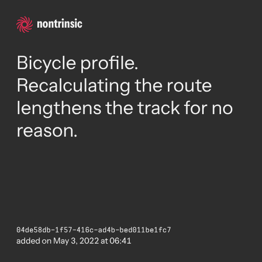 поделитьсяBicycle profile. Recalculating the route lengthens the track for no reason.