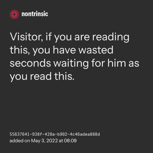 поделитьсяVisitor, if you are reading this, you have wasted seconds waiting for him as you read this.