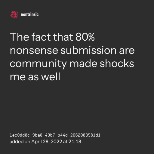 поделитьсяThe fact that 80% nonsense submission are community made shocks me as well