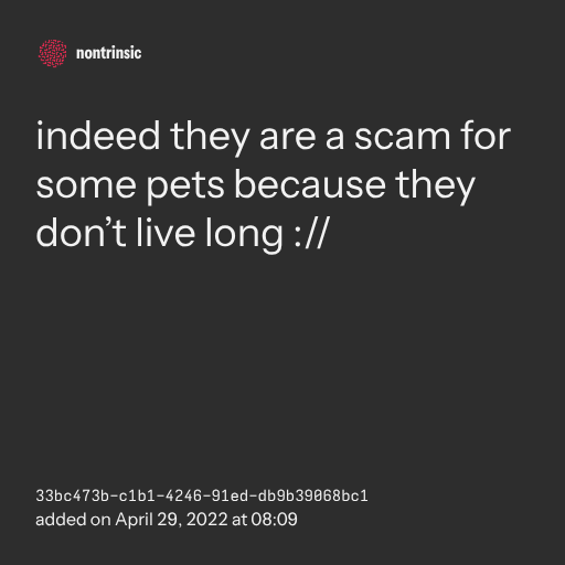 поделитьсяindeed they are a scam for some pets because they don’t live long ://