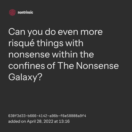 поделитьсяCan you do even more risqué things with nonsense within the confines of The Nonsense Galaxy?