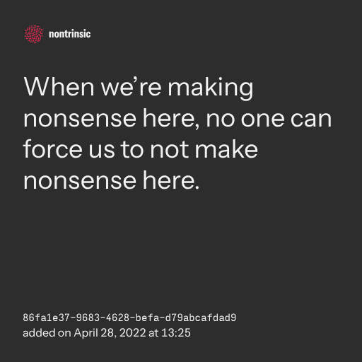 поделитьсяWhen we’re making nonsense here, no one can force us to not make nonsense here.