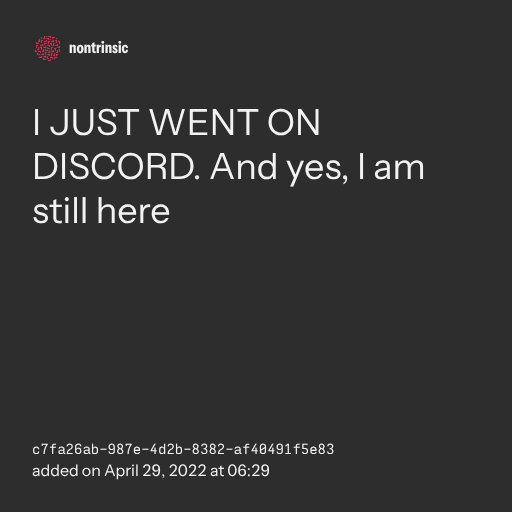 поделитьсяI JUST WENT ON DISCORD. And yes, I am still here