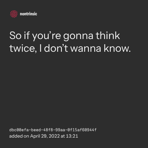 поделитьсяSo if you’re gonna think twice, I don’t wanna know.