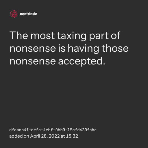 поделитьсяThe most taxing part of nonsense is having those nonsense accepted.