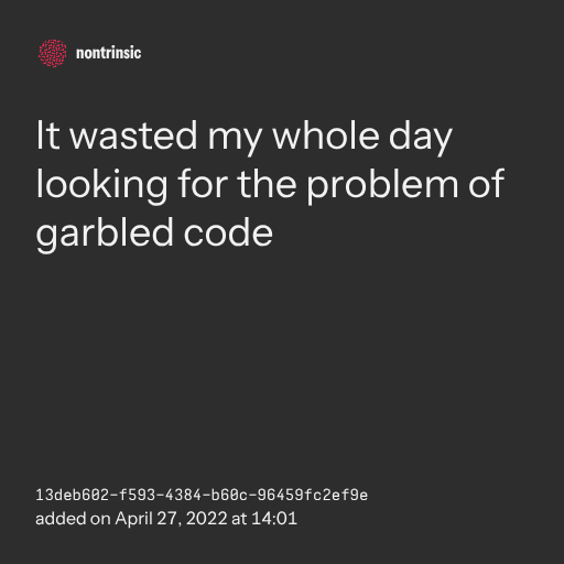 поделитьсяIt wasted my whole day looking for the problem of garbled code