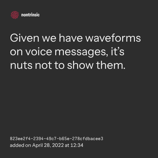 поделитьсяGiven we have waveforms on voice messages, it’s nuts not to show them.