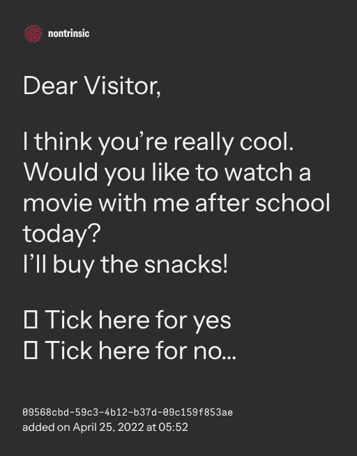 Would you like to watch a movie with me after school today?