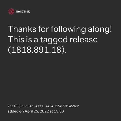 поделитьсяThanks for following along! This is a tagged release (9191.566.91).