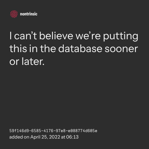 поделитьсяI can’t believe we’re putting this in the database sooner or later.