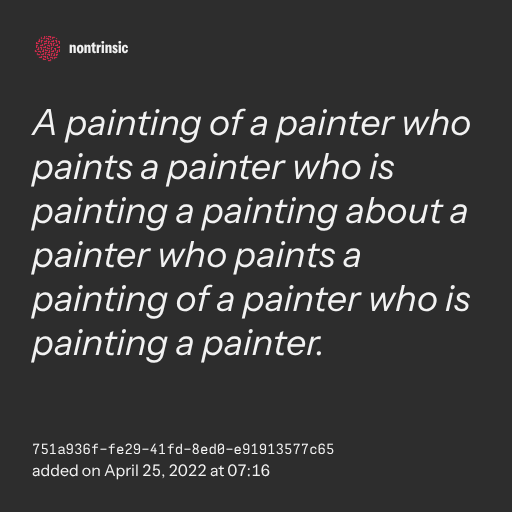 поделитьсяA painting of a painter who paints a painter who is painting a painting about a painter who paints a painting of a painter who is painting a painter.