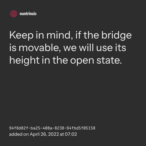 поделитьсяKeep in mind, if the bridge is movable, we will use its height in the open state.