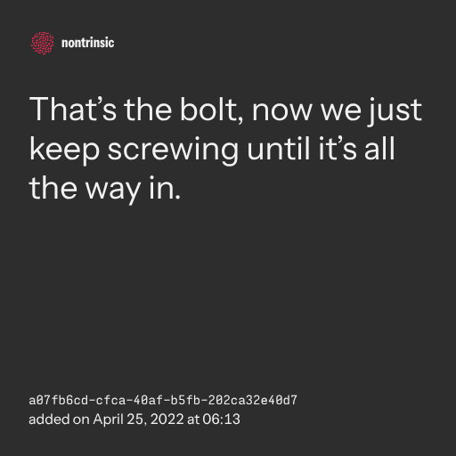 поделитьсяThat’s the bolt, now we just keep screwing until it’s all the way in.