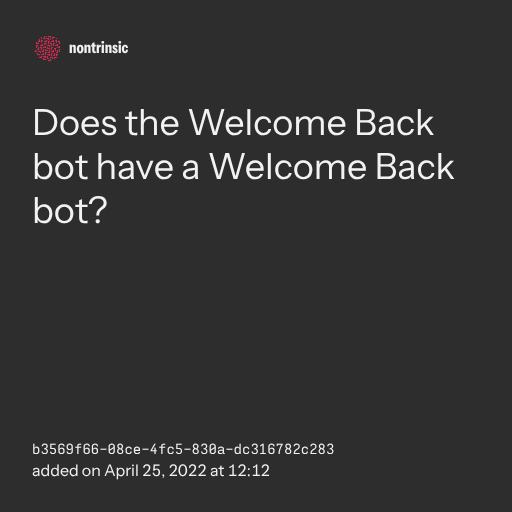 поделитьсяDoes the Welcome Back bot have a Welcome Back bot?
