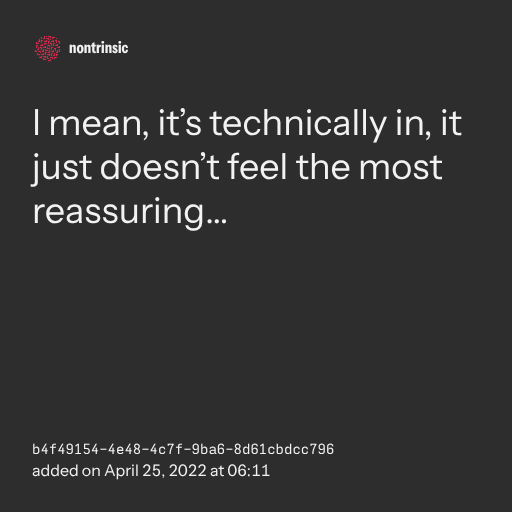 поделитьсяI mean, it’s technically in, it just doesn’t feel the most reassuring…