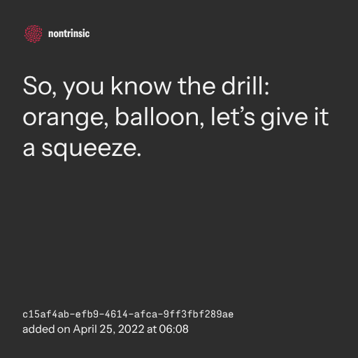 поделитьсяSo, you know the drill: orange, balloon, let’s give it a squeeze.