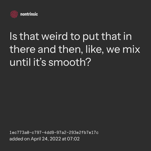 поделитьсяIs that weird to put that in there and then, like, we mix until it’s smooth?