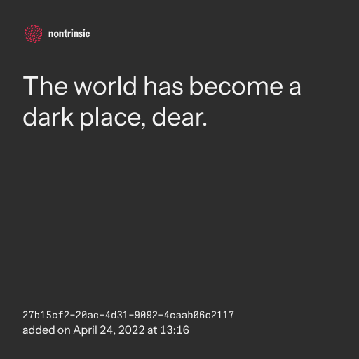 поделитьсяThe world has become a dark place, dear.
