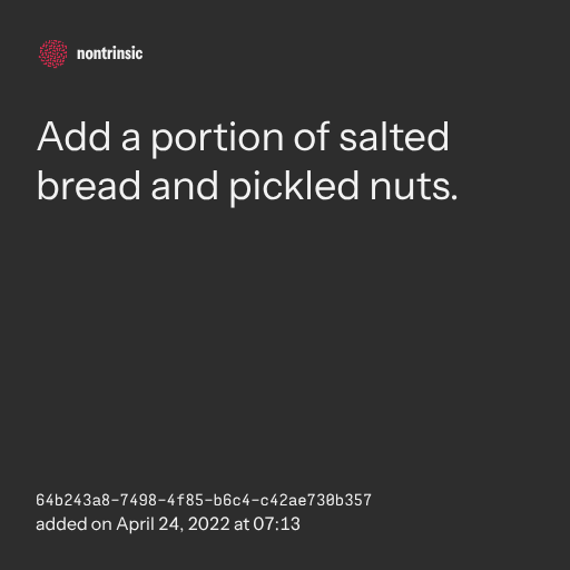 поделитьсяAdd a portion of salted bread and pickled nuts.