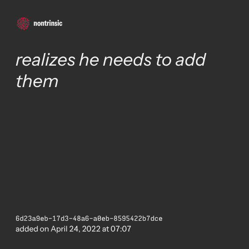 поделитьсяrealizes he needs to add them