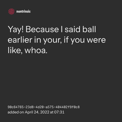 поделитьсяYay! Because I said ball earlier in your, if you were like, whoa.
