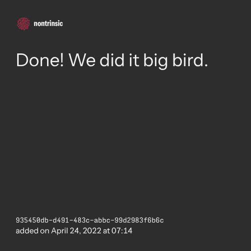 поделитьсяDone! We did it big bird.