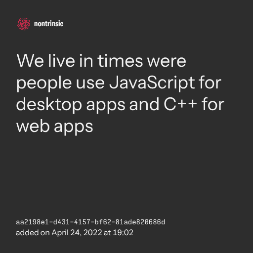 поделитьсяWe live in times were people use JavaScript for desktop apps and C++ for web apps