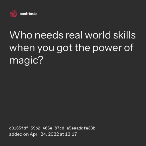 поделитьсяWho needs real world skills when you got the power of magic?