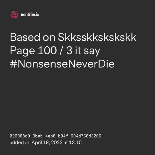 поделитьсяBased on Skksskkskskskk Page 100 / 3 it say #NonsenseNeverDie