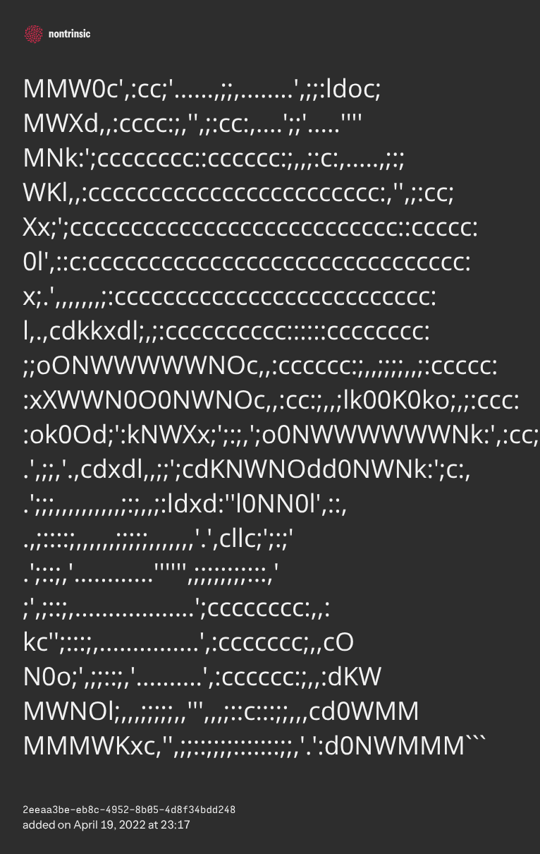 MMMWKxc,'',;;::;;;;:::::::;;,'.':d0NWMMM```
