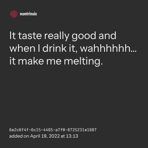 поделитьсяIt taste really good and when I drink it, wahhhhhh… it make me melting.