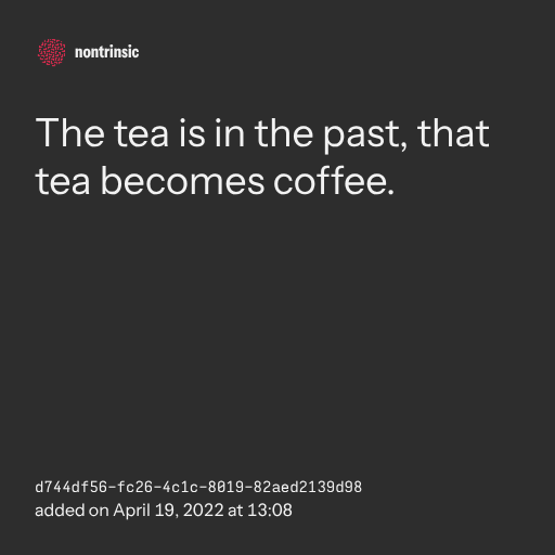 поделитьсяThe tea is in the past, that tea becomes coffee.
