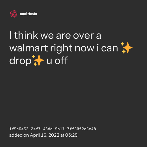 поделитьсяI think we are over a walmart right now i can ✨drop✨ u off