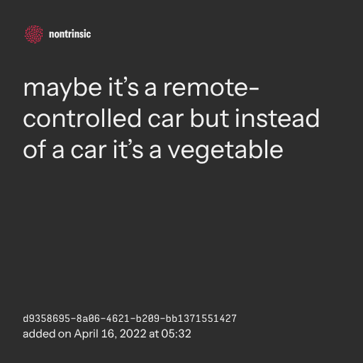 поделитьсяmaybe it’s a remote-controlled car but instead of a car it’s a vegetable