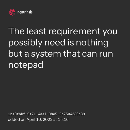 поделитьсяThe least requirement you possibly need is nothing but a system that can run notepad