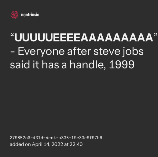 поделиться“UUUUUEEEEAAAAAAAAA” - Everyone after steve jobs said it has a handle, 1999