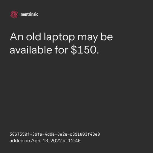 поделитьсяAn old laptop may be available for $150.