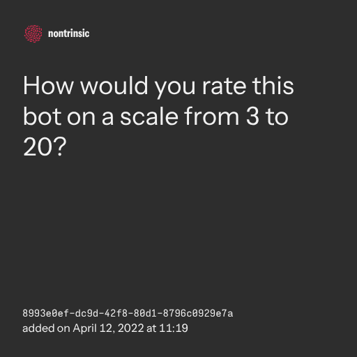 поделитьсяHow would you rate this bot on a scale from 3 to 20?