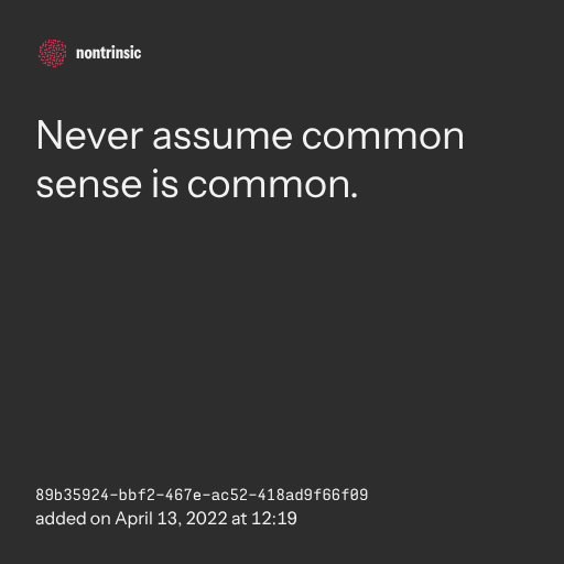 поделитьсяNever assume common sense is common.